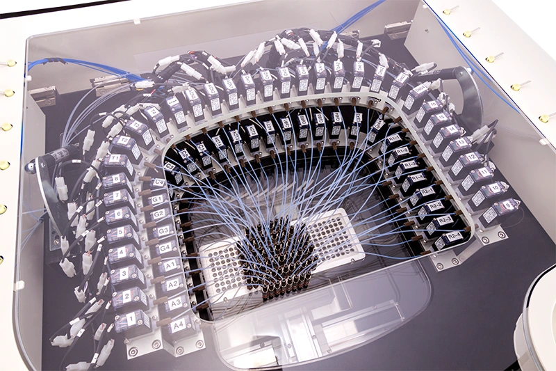The Shasta 768 module is designed for high-throughput applications, ideal for scientists conducting oligo screening, library generation, or custom batch synthesis. It accommodates one or two 384-well plates, and supports extensive oligonucleotide synthesis applications.